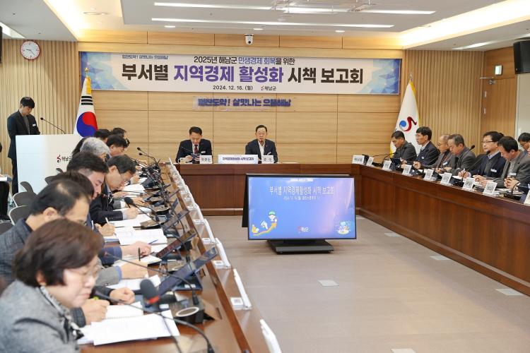 ¸íÇö°ü ±º¼ö´Â 16ÀÏ Áö¿ª°æÁ¦ Ȱ¼ºÈ¸¦ À§ÇÑ ½ÃÃ¥º¸°íȸ¸¦ °®°í, ¹Î»ý°æÁ¦ÀÇ È¸º¹°ú Áö¿ª ¼Ò»ó°øÀÎ ¹× Áß¼Ò±â¾÷ µîÀÇ È°·ÂÀ» ´õÇÒ ¼ö ÀÖ´Â °æ±â ºÎ¾ç ¹æ¾ÈÀ» ºÐ¾ßº°·Î Á¶¼ÓÈ÷ ½ÃÇàÇÒ °ÍÀ» ÁÖ¹®Çß´Ù.