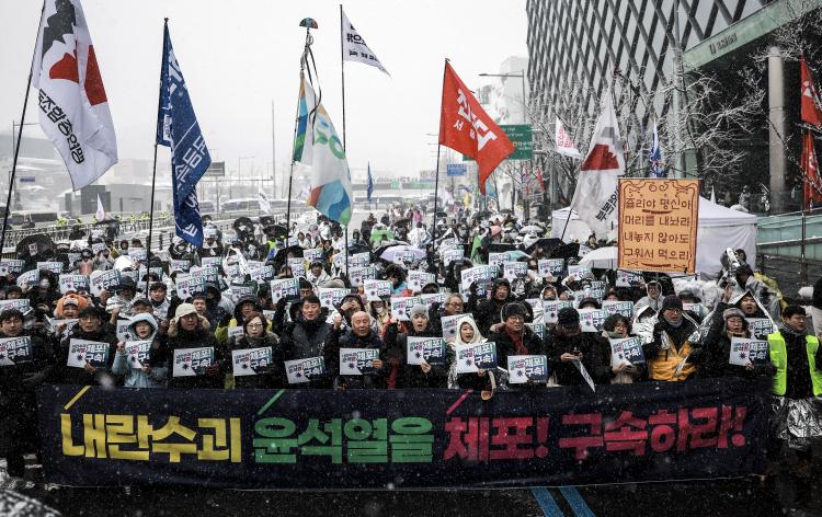 °æÂûÀº Àü³¯ À±¼®¿ ´ëÅë·É¿¡ ´ëÇÑ Ã¼Æ÷¿µÀå ÁýÇàÀ» Ã˱¸ÇÏ¸ç ´ëÅë·É °üÀú ¾Õ¿¡¼ Áýȸ¸¦ ¹úÀÎ ¹ÎÁÖ³ëÃÑ Á¶ÇÕ¿ø 2¸íÀ» °ø¹«ÁýÇà¹æÇØ ÇøÀǷΠüÆ÷Çß´Ù.