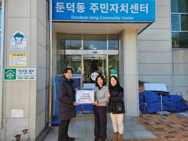¿©¼ö½ÃƼÆÄÅ©(´ëÇ¥ÀÌ»ç ÇÏÁ¦¿í)´Â Áö³ 7ÀÏ µÐ´öµ¿ Áֹμ¾Å͸¦ ¹æ¹®ÇØ °í°´µéÀÌ ½Ê½ÃÀÏ¹Ý ¸ð±ÝÇÑ 107¸¸ 2600¿øÀ» Àü¾× Àü´ÞÇß´Ù. ¼º±ÝÀº Àü³²»çȸº¹Áö°øµ¿¸ð±Ýȸ¿¡ ÁöÁ¤ ±âʵŠµÐ´öµ¿ Áö¿ª»çȸº¸ÀåÇùÀÇü¸¦ ÅëÇØ Ãë¾à°èÃþ º¹Áö»ç¾÷¿¡ »ç¿ëµÉ ¿¹Á¤ÀÌ´Ù. ÇÏÁ¦¿í ´ëÇ¥ÀÌ»ç´Â ¡°¼ÒÁßÇÏ°í ¶æ±íÀº ÀÏ¿¡ ÇÔ²²ÇÒ ¼ö ÀÖ¾î °¨»çÇϸç, ´ç»ç¿¡¼µµ Áö¿ª»çȸ¸¦ À§ÇÑ ÀÏ¿¡ ´õ ¸¹Àº ÈûÀ» º¸Å°ڴ١±°í ¸»Çß´Ù.