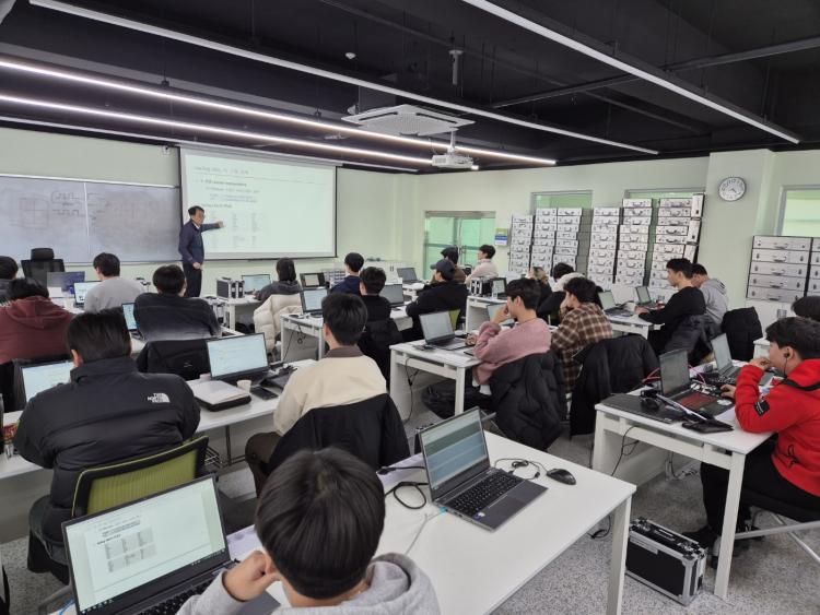 Çѱ¹Æú¸®ÅØ´ëÇÐ ¼º³²Ä·ÆÛ½º¿¡¼ ¿¸° À̹ø ±³À°Àº ¼Á¾Çö(Çѱ¹Æú¸®ÅôëÇÐ ¼º³²Ä·ÆÛ½º ±×¸°¹ÝµµÃ¼¼³°èÇаú) ±³¼ö¸¦ °»ç·Î ÃʺùÇÏ¿© HDL(Hardware Description Language)À» ÀÌ¿ëÇÑ ½Ã½ºÅÛ ¹ÝµµÃ¼ ¼³°è ÇÁ·Î±×·¥À» ¿î¿µÇÏ°í Æò¼Ò üÇèÇϱ⠾î·Á¿î ¹ÝµµÃ¼ °øÁ¤À» üÇèÇÏ´Â ¶æ±íÀº ½Ã°£À» º¸³Â´Ù.