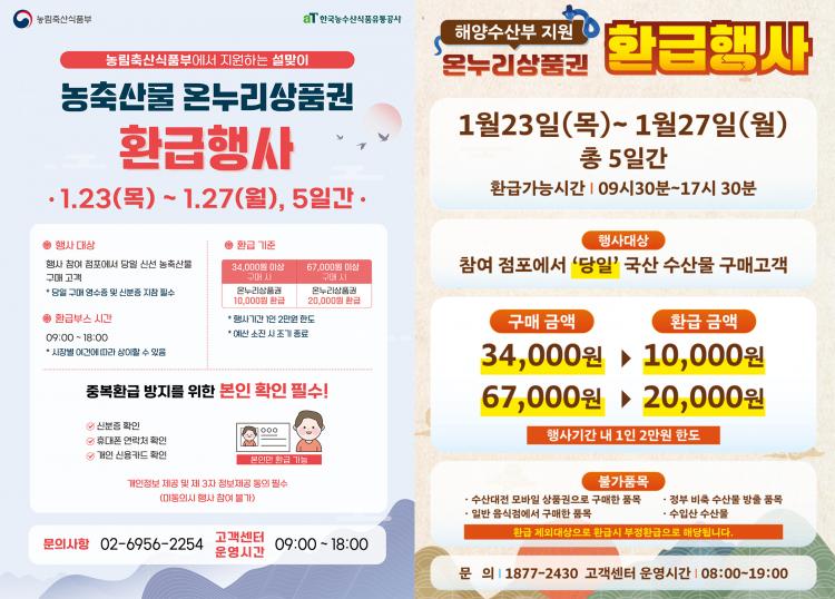 ±¸¸Å ±Ý¾× 3¸¸4000¿ø ÀÌ»ó 6¸¸7000¿ø ¹Ì¸¸À̸é 1¸¸¿ø, 6¸¸7000¿ø ÀÌ»óÀ̸é 2¸¸¿øÀÌ È¯±ÞµÈ´Ù. ³óÃà»ê¹°°ú ¼ö»ê¹° ȯ±ÞÇà»ç¸¦ µ¿½Ã ÁøÇàÇÏ´Â ½ÃÀå¿¡¼´Â ÃÖ´ë 4¸¸¿ø±îÁö ȯ±Þ¹ÞÀ» ¼ö ÀÖ´Ù.