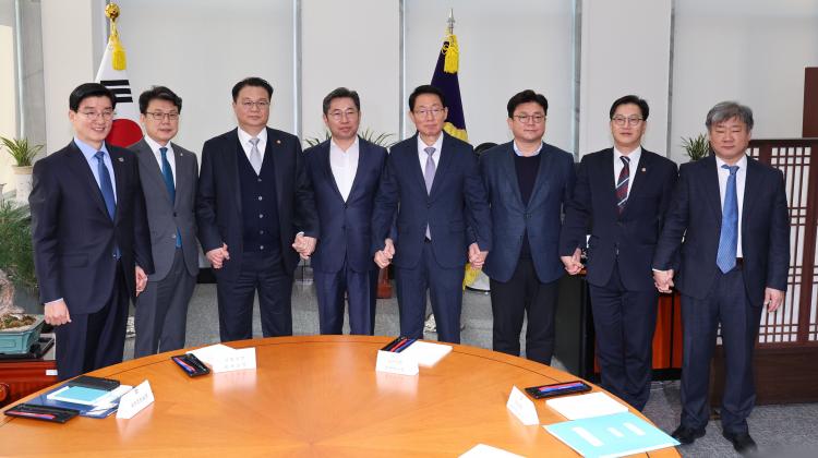 ´ÙÀ½ÁÖ 4ÀÚ ±¹Á¤ÇùÀÇȸ°¡ °³ÃÖµÇ¸é¼ ¹ÝµµÃ¼Æ¯º°¹ý ¹× Ãß°æ µî ¹Î»ý ÇØ¹ýÀÌ °¡½Ã鵃 °ÍÀ¸·Î º¸ÀδÙ. À̳¯ ½Ç¹«ÇùÀÇ¿¡´Â ¾ç´ç Á¤Ã¥À§ÀÇÀå°ú ´ç´ëÇ¥ ºñ¼½ÇÀå ¿Ü¿¡µµ Á¤ºÎ Ãø ¹æ±â¼± ±¹¹«Á¶Á¤½ÇÀå, ±è¹ü¼® ±âȹÀçÁ¤ºÎ 1Â÷°ü, ±¹È¸ Ãø¿¡¼´Â Á¶¿À¼· ±¹È¸ÀÇÀå ºñ¼½ÇÀå, °ûÇö ±¹È¸ÀÇÀå Á¤¹«¼ö¼®ÀÌ Âü¼®Çß´Ù.