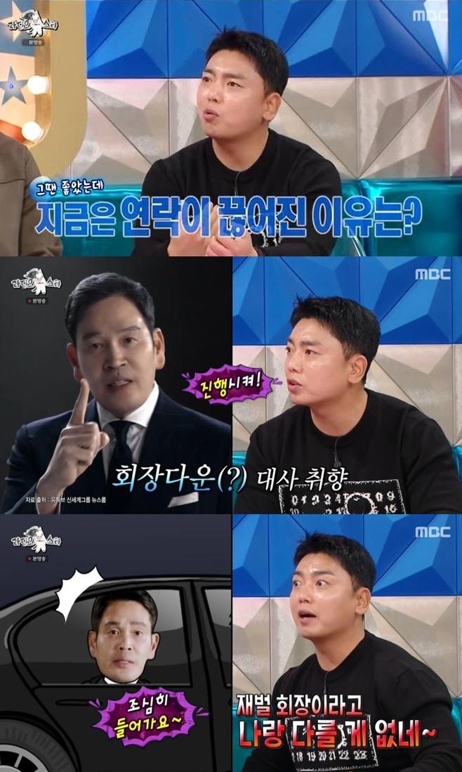 °û¹üÀº Áö³ 19ÀÏ ¹æ¼ÛÇÑ MBC TV ¡®¶óµð¿À½ºÅ¸¡¯¿¡¼ À̰濵 ¼º´ë¸ð»ç ÈÄ Á¤ ȸÀåÀ» ¸¸³µ´Ù°í Åоî³ù´Ù. ¡°ÇÏ·ç´Â ¿¬¶ôÀÌ ¿Ô´Ù. ¡®½Å¼¼°è Á¤¿ëÁø ȸÀåÀÌ ÁÁ¾ÆÇϴµ¥, ÀÚ¸®¸¦ ÇÔ²² ÇÒ ¼ö Àְڳġ¯°í ÇÏ´õ¶ó. Á¤ ȸÀåÀÌ À½½ÄÀ» ÇØ¼ ³»ÁÖ´Â ÇÁ¶óÀ̺øÇÑ °÷ÀÌ ÀÖ´õ¶ó. °Å±â¼ ÇÒ ¼ö ÀÖ´Â °Ç ´ÙÇß´Ù. ¹ä ¸Ô°í ¾ê±â ³ª´©´Ù°¡ ÀÚ¿¬½º·´°Ô ¼º´ë¸ð»çµµ Çß´Ù¡±°í ¹àÇû´Ù.