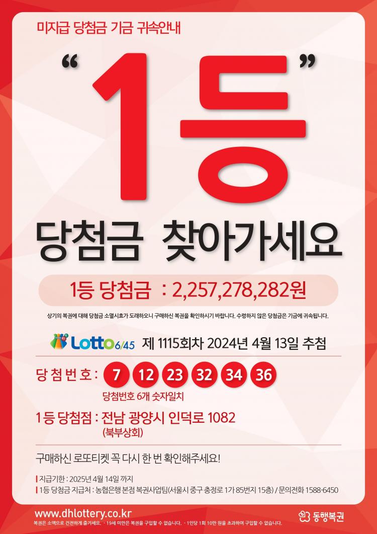 24ÀÏ º¹±Ç¼öʾ÷ÀÚ µ¿Çູ±ÇÀº ¡°Áö³ÇØ 4¿ù 13ÀÏ Ãß÷ÇÑ ·Î¶Çº¹±Ç 1115ȸÂ÷ 1µî°ú 2µî ¹Ì¼ö·É ´ç÷±Ý Áö±Þ ±âÇÑÀÌ ¾à ÇÑ ´Þ ¾ÕÀ¸·Î ´Ù°¡¿Ô´Ù¡±°í ¹àÇû´Ù.