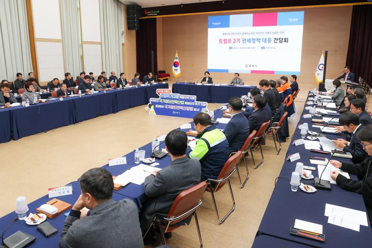 Á¤ÀÎÈ ±¤¾ç½ÃÀåÀº 24ÀÏ ½Ãû ´ëȸÀǽǿ¡¼ ¿¸° ¡®Æ®·³ÇÁ 2±â °ü¼¼Á¤Ã¥ ´ëÀÀ °£´ãȸ¡¯¸¦ ÁÖÀçÇß´Ù. À̹ø °£´ãȸ´Â ¹Ì±¹ÀÇ º¸È£¹«¿ªÁÖÀÇ ½ÉÈ·Î ¿¹»óµÇ´Â °ü¼¼ À庮¿¡ ´ëÀÀÇϱâ À§ÇÑ ÀÚ¸®·Î, ±â¾÷ ¾Ö·Î»çÇ×À» ûÃëÇÏ°í ´ëÀÀ Àü·«À» ³íÀÇÇÏ´Â µî °ü¼¼Á¤Ã¥ º¯È¿¡ µû¸¥ Áö¿ª °æÁ¦ Ÿ°ÝÀ» ÃÖ¼ÒÈÇÏ´Â ¹æ¾ÈÀ» ¸ð»öÇÏ´Â µ¥ ÃÊÁ¡À» ¸ÂÃè´Ù.