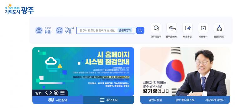 26ÀÏ ±¤Áֽÿ¡ µû¸£¸é À̳¯ ¿ÀÀü 8½Ã 10ºÐ²² ±¤ÁÖ½Ã¿Í µ¿±¸¡¤ºÏ±¸¡¤¿¹¼úÀÇÀü´ç µî 19°³ ±â°üÀÇ È¨ÆäÀÌÁö Á¢¼ÓÀÌ Â÷´ÜµÆ´Ù.