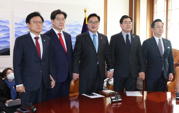 ¹ÚÇü¼ö ±¹¹ÎÀÇÈû ¿ø³»¼ö¼®ºÎ´ëÇ¥´Â ¿ø³»´ëÇ¥ ȸµ¿ µÚ ±âÀÚµé°ú ¸¸³ª ¡°ÃÖ»ó¸ñ ´ëÅë·É ±ÇÇÑ´ëÇà ºÎÃѸ® °â ±âȹÀçÁ¤ºÎ Àå°ü°ú ¿ì ÀÇÀå, ±Ç ¿ø³»´ëÇ¥, ¹Ú ¿ø³»´ëÇ¥°¡ ¿À´Â 28ÀÏ ¿ÀÈÄ 3½Ã 30ºÐ¿¡ (±¹Á¤ÇùÀÇȸ¸¦) °³ÃÖÇϱâ·Î ÀáÁ¤ ÇùÀÇÇß´Ù¡±°í ÀüÇß´Ù. ¾Õ¼ ±¹Á¤ÇùÀÇȸ´Â ù ȸÀǸ¸ ¾ç´ç ´ëÇ¥°¡ Âü¼®Çϰí ÀÌÈĺÎÅÍ´Â ¿ø³»´ëÇ¥°¡ Âü¿©Å°·Î ÇÑ ¹Ù ÀÖ´Ù.