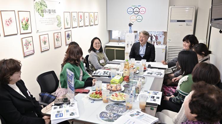 ±èÀ̰ ¼±¸Ã»ÀåÀº 26ÀÏ Ç³¾Ïµ¿ ÇàÁ¤º¹Áö¼¾ÅÍ¿¡¼ 17°³ µ¿¾Æ¸® Âü¿©ÀÚµé°ú °£´ãȸ¸¦ °¡Á³´Ù. ÀÌ ÀÚ¸®¿¡ Âü¼®ÇÑ ÁֹεéÀº ¡°°ü½É»ç¿Í Ãë¹Ì°¡ °°Àº Áֹε鳢¸® µ¿¾Æ¸®¸¦ ÅëÇØ ¼ÒÅëÇÏ¸é¼ ÀÚ¿¬½º·´°Ô »õ·Î¿î ÀÌ¿ô°ú »ç±Í°Ô µÇ°í ¿ì¸® °¡Á·ÀÌ »ì°í Àִ dz¾Ïµ¿¿¡ ´ëÇÑ °ü½Éµµ Ä¿Á³´Ù¡±°í ÀÔÀ» ¸ð¾Ò´Ù. ƯÈ÷ dz¾Ïµ¿Àº ÇàÁ¤º¹Áö¼¾ÅÍ ³» µ¿Àå½Ç±îÁö µ¿¾Æ¸® Ȱµ¿ °ø°£À¸·Î ³»ÁÖ´Â µî Áֹεé Ȱµ¿À» ÀüÆøÀûÀ¸·Î Áö¿øÇÏ¸é¼ Å« È£ÀÀÀ» ¾ò°í ÀÖ´Ù.