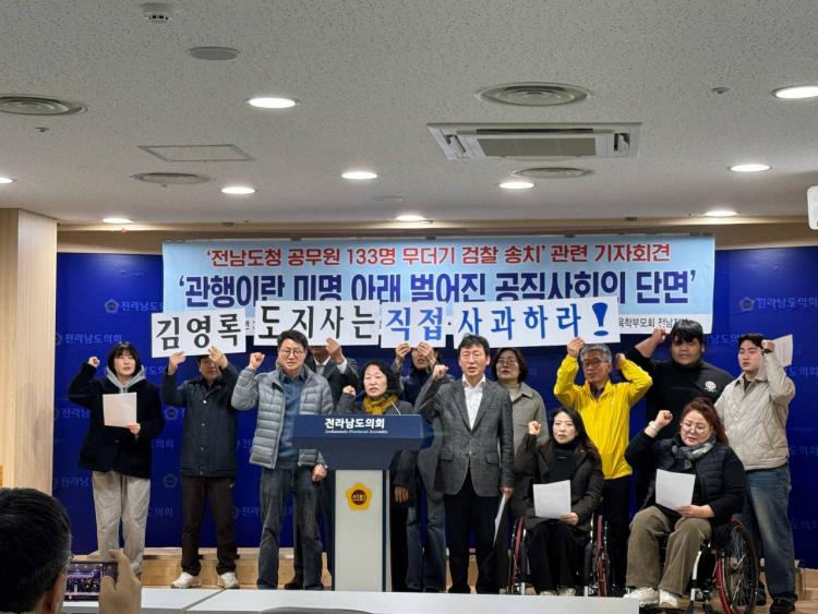 ¸ñÆ÷¹®È¿¬´ë¿Í ¸ñÆ÷°æ½Ç·Ã, Á¤ÀÇ´ç Àü³²µµ´ç, Âü±³À°Çкθðȸ Àü³²ÁöºÎ´Â 6ÀÏ Àü³²µµÀÇȸ¿¡¼ ±âÀÚȸ°ßÀ» ¿°í ¡°°ø¹«¿ø 133¸íÀÌ ¹«´õ±â °ËÂû ¼ÛÄ¡µÈ »ç°Ç¿¡ ´ëÇØ ±è¿µ·Ï Áö»ç´Â µµ¹Î¿¡°Ô »çÁËÇÏ¶ó¡±°í ¿ä±¸Çß´Ù.