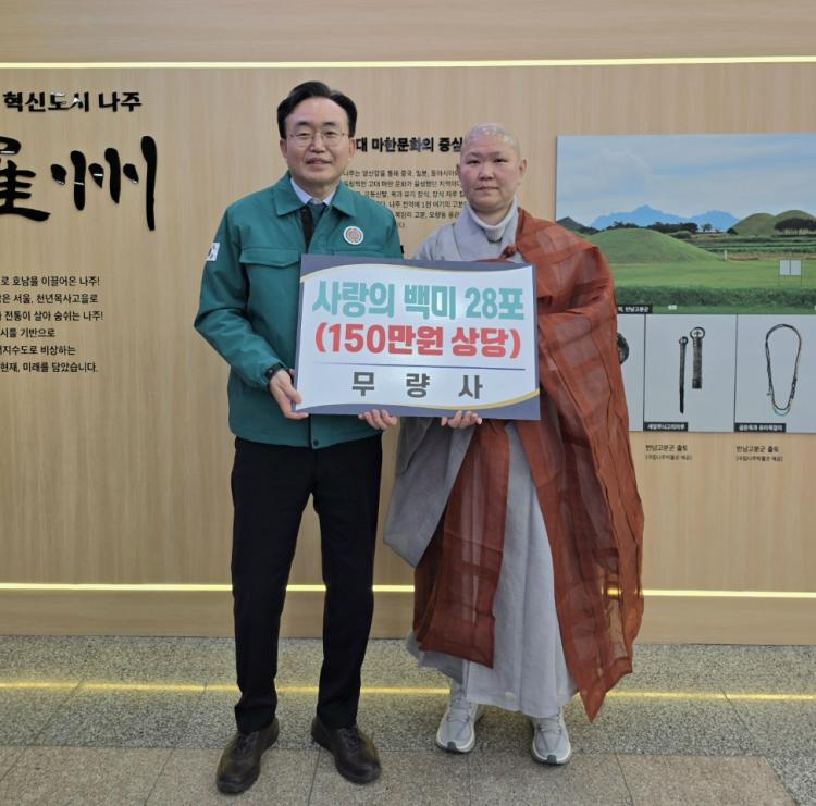 À±º´Å ³ªÁÖ½ÃÀåÀº ¡°¾î·Á¿î ÀÌ¿ôÀ» À§ÇØ ³ª´®À» ½ÇÃµÇØ Áֽй«·®»ç¿Í ½Åµµµé²² °¨»çµå¸°´Ù¡±¸ç ¡°±âÅ¹ÇØ Áֽйé¹Ì¸¦ ²À ÇÊ¿äÇÑ ÀÌ¿ôµé¿¡°Ô ¼ÒÁßÈ÷ Àü´ÞÇϰڴ١±°í ¹àÇû´Ù.