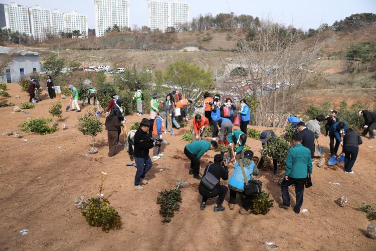À̹ø Çà»ç¿¡¼´Â ÃÊÈ·ù¿Í Àܵ𸦠Æ÷ÇÔÇØ ÃÑ 1500¿© º»ÀÇ ³ª¹«¿Í ½Ä¹°ÀÌ ½É°å´Ù. Âü°¡ÀÚµéÀº Á¤¿øÁ¶¼º, ºñ·á ÁÖ±â, ¹°ÁÖ±â µî ´Ü¼øÇÑ ³ª¹« ½É±â¸¦ ³ÑÀº ³ì»öµµ½Ã Á¶¼º°èȹ°ú ¿¬°èµÈ ½ÇõÀû Ȱµ¿À» ÆîÄ¡¸ç ±¤¾çÀÇ Çª¸¥ ¹Ì·¡ Á¶¼º¿¡ ÈûÀ» º¸ÅÉ´Ù.