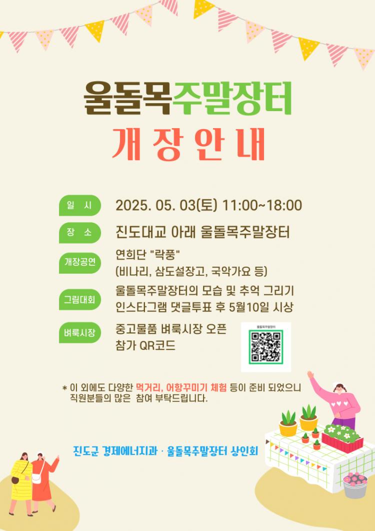 ¿ïµ¹¸ñ ÁÖ¸»ÀåÅÍ´Â 5¿ù 3ÀÏ °³Àå½ÄÀ» ½ÃÀÛÀ¸·Î Áøµµ±º¿¡¼ »ý»êÇÑ Æ¯»êǰ°ú ³ó¡¤¼ö»ê¹°À» Ȱ¿ëÇØ ¸¸µç ¿ä¸®¸¦ ÆÇ¸ÅÇÔÀ¸·Î½á »óÀεé°ú °ü±¤°´ÀÌ ¼ÒÅëÇÏ´Â °ø°£À¸·Î ¿î¿µµÉ ¿¹Á¤ÀÌ´Ù.