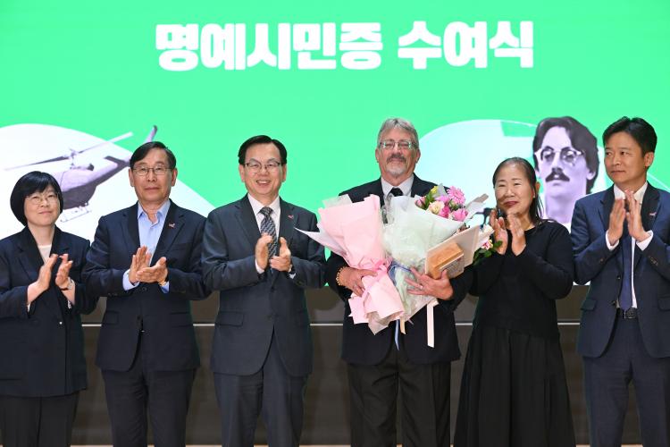µ¥À̺ñµå µ¹¸°Àú´Â ¡°45³â Àü ÇÑ ÀÏÀ» ÀÎÁ¤¹Þ´Â´Ù´Â °ÍÀº °¨»çÇϸ鼵µ µ¿½Ã¿¡ °âÇãÇÏ°Ô ¹Þ¾Æµé¿©¾ß ÇÒ ÀÏ¡±À̶ó¸ç ¡°Á¸°æÇÏ´Â ±¤ÁֽùεéÀº ÇöÀçÀÇ Á¦°¡ º¸´Ù ´õ ³ªÀº »ç¶÷ÀÌ µÇµµ·Ï µµ¿ÍÁá´Ù¡±°í Çß´Ù.