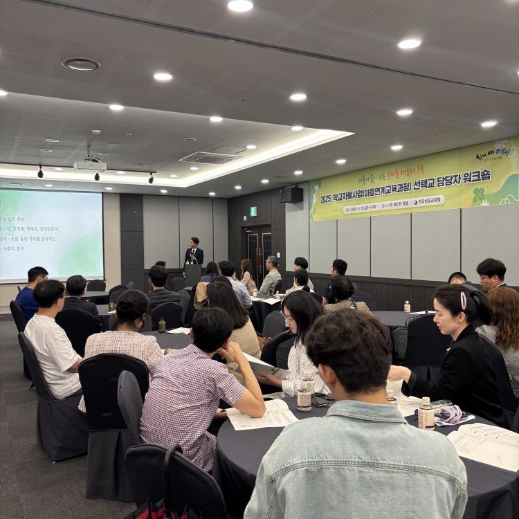 Àü³²±³À°Ã»Àº ¸¶À»¿¬°è ±³À°°úÁ¤ÀÌ ÇöÀå¿¡¼ ³»½Ç ÀÖ°Ô ¿î¿µµÉ ¼ö ÀÖµµ·Ï, 16ÀÏ ³ªÁÖ¿þ½ºÅÏÈ£ÅÚ¿¡¼ ¡®¸¶À»¿¬°è ±³À°°úÁ¤ ¼±Åñ³ ´ã´çÀÚ ¿öÅ©¼ó¡¯À» °³ÃÖÇß´Ù. À̳¯ Çà»ç¿¡´Â ¸¶À»¿¬°è ±³À°°úÁ¤À» ¿î¿µ ÁßÀÎ Çб³ÀÇ ´ã´ç ±³»ç, ±³À°Áö¿øÃ» ÀåÇлç, ÁÖ¹«°ü µî 100¿© ¸íÀÌ Âü¼®Çß´Ù.