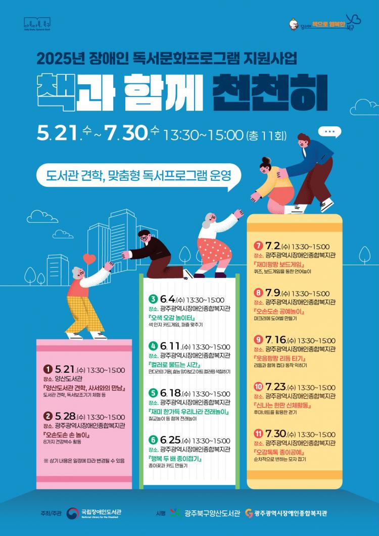 °ø¸ð ¼±Á¤¿¡ µû¶ó ¾ç»êµµ¼°üÀº ¡®Ã¥°ú ÇÔ²² õõÈ÷¡¯¶ó´Â ÁÖÁ¦·Î ±¤ÁÖÀå¾ÖÀÎÁ¾ÇÕº¹Áö°ü°ú Çù¾÷ÇÏ¿© ÁöüÀå¾ÖÀο¡°Ô µµ¼°ü °ßÇÐ, ±×¸²Ã¥ °¨»ó, µ¶ÈÄȰµ¿ µî Àå¾Ö Ư¼º¿¡ ÀûÇÕÇÑ ¸ÂÃãÇü ¹®È üÇèÀ» Áö¿øÇÑ´Ù.