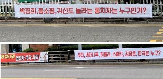 Çö¼ö¸·¿¡´Â ¡ã¡°ÇªÆ¾, ³×Ÿ³ÄÈÄ, È÷Ʋ·¯, ½ºÅ»¸°, ±èÁ¤Àº¡¦ Çѱ¹Àº ´©±¸?¡± ¡ã¡°¹ÚÁ¤Èñ, µî¼ÒÆò, ±Í½Åµµ ³î¶ó´Â ÅëÄ¡ÀÚ´Â ´©±¸Àΰ¡?¡± ¡ã¡°´ë¹ý¿ø À¯ÁË ÆÇ°á, ¹üÁËÀÚ Áï°¢ »çÅ𡱠µîÀÇ ¹®±¸°¡ ¾²¿©ÀÖ´Ù.