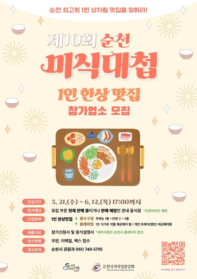 ¡®¼øÃµ¹Ì½Ä´ëø¡¯Àº 2018³âºÎÅÍ ½ÃÀÛÇØ ¿ÃÇØ·Î 10ȸ¸¦ ¸ÂÀº Áö¿ª ´ëÇ¥ À½½Ä °æ¿¬´ëȸ·Î, Áö±Ý±îÁö ÃÑ 134°³ ¾÷¼Ò¸¦ ¼±Á¤¡¤È«º¸ÇÏ¸ç ¼øÃµ ¹Ì½Ä¹®È¸¦ ³Î¸® ¾Ë¸®´Â µ¥ ±â¿©ÇØ ¿Ô´Ù.
