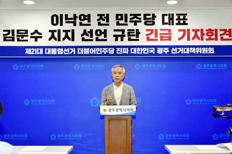´õºÒ¾î¹ÎÁÖ´ç ¾çºÎ³² ±¤ÁÖ¼±´ëÀ§¿øÀåÀº À̳¯ ±¤ÁÖ½ÃÀÇȸ¿¡¼ ±âÀÚȸ°ßÀ» °®°í ¡°±¤ÁֽùÎÀÇ ¾ÐµµÀû ÁöÁö¿Í ¼º¿øÀ¸·Î ¹ÎÁÖ´ç ´ëÇ¥±îÁö ¿Ã¶ú´ø Àι°ÀÌ ³»¶õ ¼¼·Â¿¡ ´ëÇØ »ç°úÇÏÁö ¾ÊÀº ±è È常¦ ÁöÁöÇÑ´Ù´Â °ÍÀº Ãæ°ÝÀû¡±À̶ó¸é¼ ¡°ÀÌ´Â ´Ü¼øÇÑ Á¤Ä¡Àû ¼±ÅÃÀ» ³Ñ¾î ±¤ÁÖÁ¤½Å¿¡ ´ëÇÑ ºÎÁ¤ÀÌ¸ç ±¤ÁֽùÎÀÇ ¸í¿¹¸¦ Áþ¹â´Â ÇàÀ§¡±¶ó°í ºñÆÇÇß´Ù.