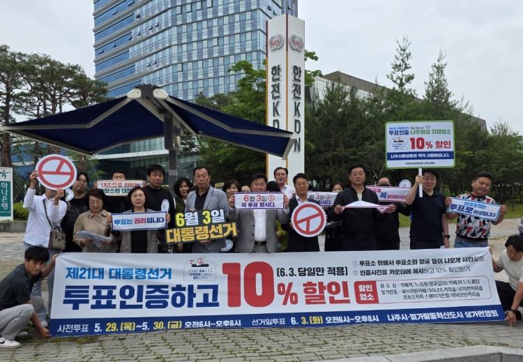 ³ªÁÖ½Ã(½ÃÀå À±º´ÅÂ)´Â ³ªÁֽà »ó°¡¹ø¿µÈ¸¿Í ºû°¡¶÷µ¿Çõ½Åµµ½Ã »ó°¡¹ø¿µÈ¸°¡ ¡®ÅõÇ¥ ÀÎÁõ ÇÒÀÎ À̺¥Æ®¡¯¸¦ ÁøÇàÇØ ¿øµµ½É°ú ºû°¡¶÷µ¿ Ä«Æä ÃÑ 10°÷¿¡¼ 10%ÇÒÀÎ ÇýÅÃÀ» Á¦°øÇÑ´Ù°í 28ÀÏ ¹àÇû´Ù.