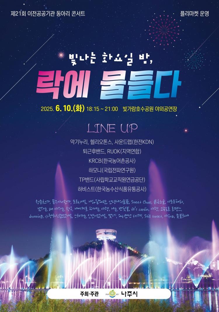 ³ªÁÖ½Ã(½ÃÀå À±º´ÅÂ)´Â 10ÀÏ ¿ÀÈÄ 6½ÃºÎÅÍ 9½Ã±îÁö ºû°¡¶÷È£¼ö°ø¿ø ¾ß¿Ü°ø¿¬Àå¿¡¼ ¡®Á¦21ȸ ÀÌÀü °ø°ø±â°ü Á¤±â µ¿¾Æ¸® ÄܼƮ¡¯¸¦ °³ÃÖÇÑ´Ù°í ¹àÇû´Ù.