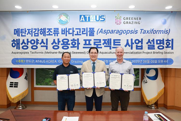 ¿Ïµµ±ºÀº 11ÀÏ ÇØ¾ç ºí·çÅ×Å© ½ºÅ¸Æ®¾÷ AT4US Korea(´ëÇ¥ À̹οµ), ±Û·Î¹ú ¹Ù´Ù°í¸®Ç® ¿¬±¸ ±â¾÷ Greener Grazing LLC(´ëÇ¥ Á¶½¬ °ñµå¸¸)¿Í ÅäÁ¾ ¹Ù´Ù°í¸®Ç®(Asparagopsis taxiformis)À» Ȱ¿ëÇÑ ¾ç½Ä »ê¾÷ ¹ßÀü°ú Ãà»ê ¸Þź Àú°¨ ź¼Ò Á߸³ ½ÇÇöÀ» À§ÇÑ 3ÀÚ °£ ¾÷¹« Çù¾àÀ» ü°áÇß´Ù°í ¹àÇû´Ù.