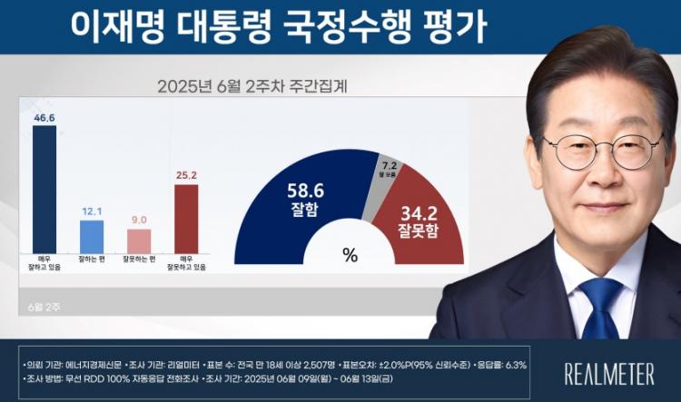 ÇâÈÄ ÀÌ ´ëÅë·ÉÀÇ ±¹Á¤¼öÇà Àü¸ÁÀ» ¹¯´Â Áú¹®¿¡´Â ¡®Àß ÇÒ °Í¡¯À̶õ ±àÁ¤Àû Àü¸ÁÀÌ 59.4%, ¡®Àß ÇÏÁö ¸øÇÒ °Í¡¯À̶õ ºÎÁ¤Àû Àü¸ÁÀÌ 34.9%·Î ³ªÅ¸³µ´Ù. ±àÁ¤ Àü¸ÁÀº ÀüÁÖ ´ëºñ 1.2%p ¿Ã¶ú°í, ºÎÁ¤ Àü¸ÁÀº 0.6%p ³»·È´Ù.