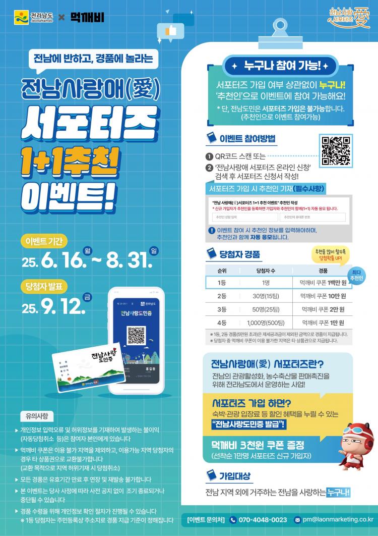 À̹ø À̺¥Æ®´Â ±âÁ¸ ¼Æ÷ÅÍÁî¿Í Àü³²µµ¹Îµµ ÃßõÀÎÀ¸·Î Âü¿© °¡´ÉÇÏ¸ç ½Å±Ô °¡ÀÔÀÚ°¡ ÃßõÀÎÀ» µî·ÏÇÏ¸é °¡ÀÔÀÚ¿Í ÃßõÀÎÀÌ ÇÔ²²(1+1) ÀÚµ¿ ÀÀ¸ðµÇ´Â ¹æ½ÄÀÌ´Ù.
