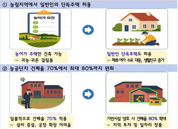 ±×°£ ³ó¾î¾÷ÀÎÀÌ ¾Æ´Ï¸é ³ó¸²Áö¿ª¿¡ ´Üµ¶ÁÖÅÃÀ» ÁöÀ» ¼ö ¾ø¾ú´Ù. À̹ø ½ÃÇà·É Åë°ú·Î ÀϹÝÀεµ ºÎÁö¸éÀû 1000§³ ¹Ì¸¸ÀÇ ´Üµ¶ÁÖÅÃÀ» °ÇÃàÇÒ ¼ö ÀÖ°Ô µÇ¸é¼ ±Í³ó¡¤±ÍÃÌ, ¿©°¡ µî Àα¸ À¯ÀÔÀÌ °¡´ÉÇØÁ³´Ù. ´Ù¸¸ »ê¸² ÈѼÕÀÇ ¿ì·Á°¡ ÀÖ´Â º¸Àü»êÁö³ª ³óÁö º¸Àü ¸ñÀûÀ¸·Î ÁöÁ¤µÇ´Â ³ó¾÷ÁøÈﱸ¿ªÀº Á¦¿ÜµÈ´Ù. ±¹Åä±³ÅëºÎ´Â Àü±¹¿¡ °ÉÃÄ ¾à 140¸¸ °³ ÇÊÁö°¡ ¿ÏÈ ´ë»óÀÌ µÉ °ÍÀ¸·Î ÃßÁ¤µÈ´Ù.