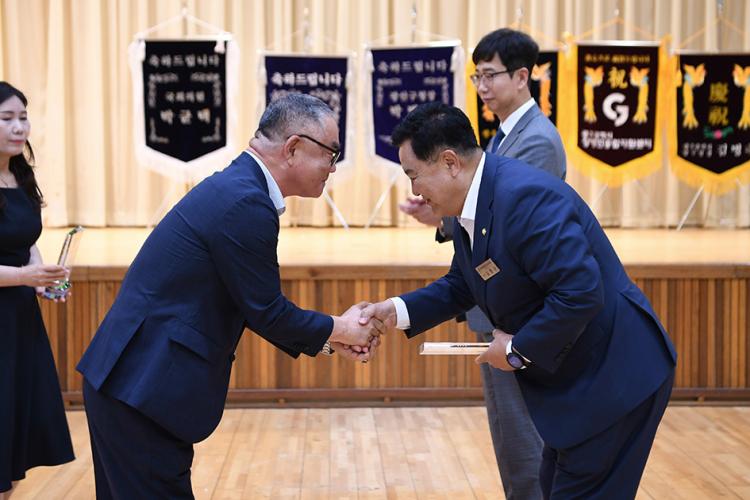 ±¤ÁÖÁöüÀå¾ÖÀÎÇùȸ(ȸÀå ¹ÚÁ¾ÇÊ)´Â ±è¸í¼ö ÀÇÀåÀÌ Æò¼Ò ºÀ»çÁ¤½ÅÀ» ¹ÙÅÁÀ¸·Î Àå¾ÖÀÎÀÇ À뱂 Çâ»ó°ú º¹Áö ÁõÁø¿¡ ±â¿©ÇÑ ¹Ù°¡ Å©°í, ƯÈ÷ Àå¾ÖÀÎÀÇ ±â´É ¿ª·® °È ¹× À̵¿±Ç Çâ»ó¿¡ º¸ÅÆÀÌ µÇ¾ú±â¿¡ º¸´äÇÏ´Â ¸¶À½À¸·Î °¨»çÆÐ¸¦ Àü´ÞÇÏ°Ô µÇ¾ú´Ù°í ÀüÇß´Ù.