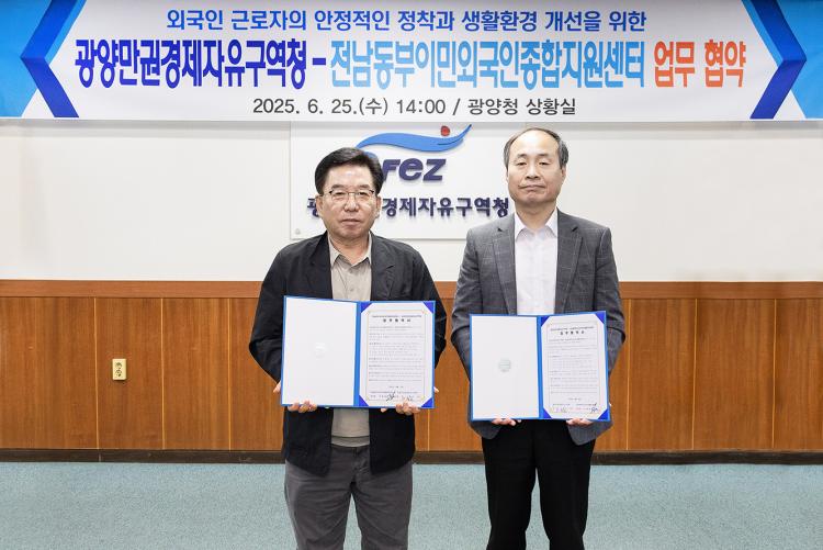 ±¸Ãæ°ï ±¤¾ç°æÀÚûÀåÀº ¡°ÃÖ±Ù ±¤¾ç¸¸±Ç¿¡ À¯ÀԵǴ ¿Ü±¹ÀÎ ±Ù·ÎÀÚ°¡ ´Ã°í ÀÖ´Â ¸¸Å À̺еéÀÌ ¿ì¸® Áö¿ªÀÇ Áß¿äÇÑ ±¸¼º¿øÀ¸·Î ¾ÈÁ¤ÀûÀÎ »ýȰÀ» ÇÒ ¼ö ÀÖµµ·Ï Áö¿øÇÏ´Â °ÍÀÌ ¸Å¿ì Áß¿äÇÏ´Ù¡±¸ç ¡°À̹ø Çù¾àÀ» ÅëÇØ Áö¿ø¼¾ÅÍ¿Í ±ä¹ÐÈ÷ Çù·ÂÇÏ¿© ¿Ü±¹ÀÎ ±Ù·ÎÀÚµéÀÌ Áö¿ª °æÁ¦ ¹ßÀü¿¡ ±â¿©Çϰí ÇູÇÏ°Ô Á¤ÂøÇÒ ¼ö Àִ ȯ°æÀ» Á¶¼ºÇÏ´Â µ¥ ÃÖ¼±À» ´ÙÇϰڴ١±°í ¹àÇû´Ù.