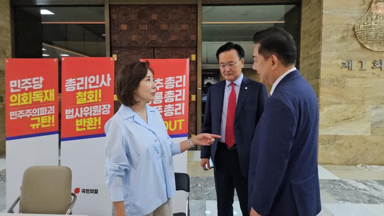 ³ª ÀÇ¿øÀº ¡®ÃѸ® Àλç öȸ, ¹ý»çÀ§¿øÀå ¹Ýȯ¡¯ ÆÖ¸»À» Áö¸ñÇÑ µÚ ¡°»¡¸® öȸÇÏ°í ¹ý»çÀ§¿øÀåÀ» ´Þ¶ó¡±°í Çß´Ù. ±×·¯³ª ±è ¿ø³»´ëÇ¥´Â ¡°¾Æ´Ï, »õ·Î¿î ÁöµµºÎ¶û ¼Õ ¸ÂÃç¼ Àß¡±À̶ó¸ç Áï´äÀ» ÇÇÇß´Ù.