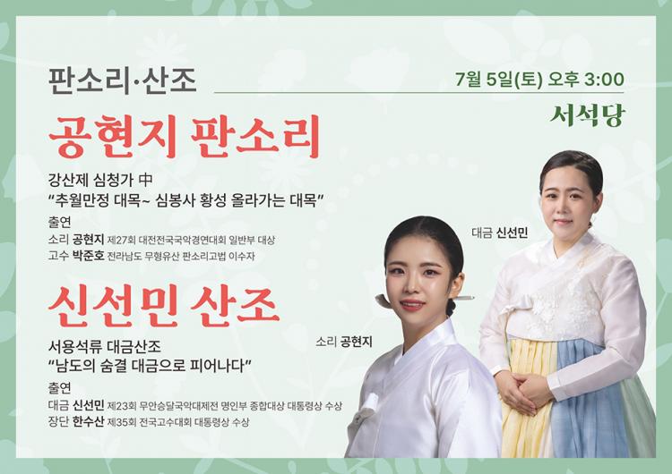 ù ¹«´ë´Â ½Å¼±¹Î ´ë±Ý ¿¬ÁÖÀÚÀÇ ¡®¼¿ë¼®·ù ´ë±Ý»êÁ¶¡¯ ¿¬ÁÖ·Î ½ÃÀ۵ȴÙ. ¼¿ë¼®Àº ´ëÇѹα¹À» ´ëÇ¥ÇÏ´Â ´ë±Ý ¿¬ÁÖÀÚ·Î, ÀüÅë »êÁ¶ÀÇ Æ²À» À¯ÁöÇϸ鼵µ »õ·Î¿î °¨°¢À» ´õÇØ ¡®¼¿ë¼®·ù ´ë±Ý»êÁ¶¡¯¸¦ â½ÃÇß´Ù. ÀÌ »êÁ¶´Â ÆÇ¼Ò¸®Àû ¼±À²°ú ¼¶¼¼ÇÑ Àå´Ü º¯È, °ÇÑ È£Èí Á¶ÀýÀ» ÅëÇØ ±ØÀûÀÎ ºÐÀ§±â¸¦ ÀھƳ»¸ç, ª°í °ÇÑ ³óÇö°ú ±Þ°ÝÇÑ À½Á¤ º¯È¸¦ ÅëÇØ °¨¼ºÀûÀÎ ±íÀ̸¦ ´õÇÑ´Ù.