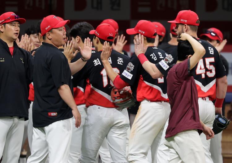 Áö³ 4~6ÀÏ Å°¿ò È÷¾î·ÎÁî¿ÍÀÇ 3¿¬ÀüÀ» ¸ðµÎ ¾µ¾î´ãÀº ÇÑÈ´Â 49½Â 2¹« 33ÆÐ¸¦ ±â·Ï, °øµ¿ 2À§ LG Æ®À©½º(46½Â 2¹« 37ÆÐ), ·Ôµ¥ ÀÚÀ̾ðÃ÷(46½Â 3¹« 37ÆÐ)¿¡ 3.5°æ±â Â÷·Î ¾Õ¼¸ç Àü¹Ý±â ¸¶Áö¸· 3¿¬Àü °á°ú¿¡ °ü°è¾øÀÌ Àü¹Ý±â 1À§¸¦ È®Á¤Çß´Ù.