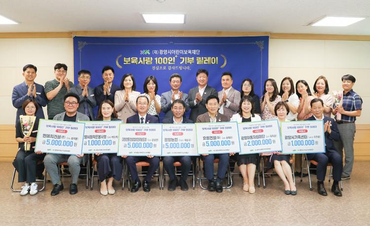 À̳¯ Çà»ç´Â ±¤¾ç½Ã ¿µÀ¯¾ÆÀÇ °Ç°Çϰí ÇູÇÑ ¼ºÀåÀ» ¹Ù¶ó´Â ¸¶À½À¸·Î ¸¶·ÃµÆÀ¸¸ç, Á¤ÀÎÈ ±¤¾ç½ÃÀå°ú À̱¤¿ë Àç´Ü ÀÌ»çÀå, ±âŹÀÚ µî 20¿© ¸íÀÌ Âü¼®ÇØ ³ª´®ÀÇ Àǹ̸¦ ´õÇß´Ù. À̹ø ±âºÎ ¸±·¹ÀÌ¿¡´Â 9°÷ÀÇ ±â¾÷¡¤´Üü¡¤°³ÀÎ µîÀÌ Âü¿©ÇØ ÃÑ 2800¸¸ ¿øÀÇ ÈÄ¿ø±ÝÀ» Àü´ÞÇß´Ù.