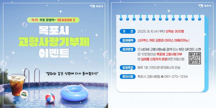 À̺¥Æ®¿¡ ´ëÇÑ ÀÚ¼¼ÇÑ »çÇ×Àº ¸ñÆ÷½Ã °ø½Ä ´©¸®Áý, SNS ¶Ç´Â ÀüÈ(061-270-1234)·Î ¹®ÀÇÇÏ¸é ¾È³»¹ÞÀ» ¼ö ÀÖ´Ù.