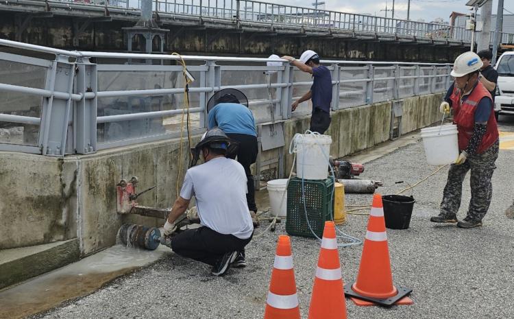 ½Ã´Â Áö³ 4ÀϺÎÅÍ 5ÀϱîÁö ¼¾Ï´ë·Î 100¹ø±æ 250¿©m ±¸°£ È«¼ö¹æ¾îº® ÇÏ´Ü¿¡ Áö¸§ 200§® ¹è¼ö±¸¸¦ 1m °£°ÝÀ¸·Î 20¿©°³ ¶Õ¾î ³õ¾Ò´Ù. ¶Ç È«¼ö¹æ¾îº®¿¡ ´ëÇØ ¹ýÀû °ËÅä¿¡ ³ª¼ ö°Å¿©ºÎ¸¦ °áÁ¤ÇÏ°Ú´Ù°í ¾à¼ÓÇß´Ù.