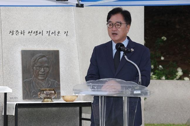 ¿ì ÀÇÀåÀº ¡°¼±»ýÀÌ ´Ã °¡½¿¿¡ ǰ°í »ì¾Ò´Ù´Â ¡®ÀÏÁÖ¸í⡯ÀÇ ±Û±Íó·³, ÀåÁØÇ϶ó´Â À̸§Àº ½Ã´ëÀÇ ¾îµÒÀ» ¹àÈ÷´Â ºûÀ̾ú°í, ²¨ÁöÁö ¾Ê´Â ¾ç½ÉÀ̾ú´Ù¡±¸ç ¡°µ¶¸³°ú ¹ÎÁÖ¿Í ÅëÀÏ, ¼±»ýÀº ¹ÎÁ·»çÀÇ Á¦´Ü¿¡ ÀÚ½ÅÀ» ¾Æ³¦¾øÀÌ ´øÁ® µîºÒ·Î Ÿ¿Ã¶ú´Ù¡±°í Çß´Ù.
