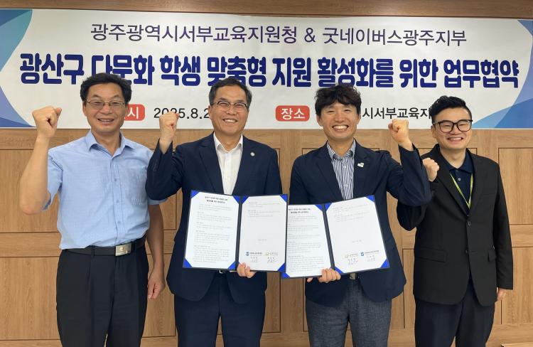 ±¤ÁÖ¼ºÎ±³À°Áö¿øÃ»Àº 20ÀÏ ¼ÒȸÀǽǿ¡¼ À̼ºÃ¶ ±³À°Àå, °½Åö ±¤»ê±³À°Áö¿ø¼¾ÅÍÀå, ¹èÁØ¿ ±Â³×À̹ö½º±¤ÁÖÁöºÎÀå µîÀÌ Âü¼®ÇÑ °¡¿îµ¥ ±Â³×À̹ö½º±¤ÁÖÁöºÎ¿Í ¾÷¹«Çù¾à(MOU)À» ü°áÇß´Ù.