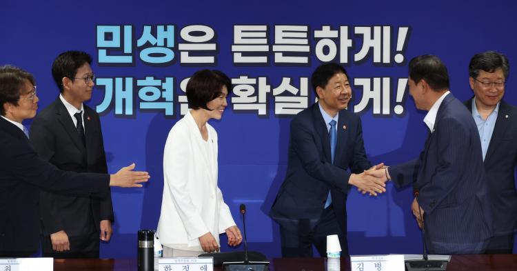 ÇÑÁ¤¾Ö ¹ÎÁÖ´ç Á¤Ã¥À§ÀÇÀåÀº À̳¯ ¼¿ï ¿©Àǵµ ±¹È¸ ÀÇ¿øÈ¸°ü¿¡¼ ¿¸° ¡®»õ Á¤ºÎ °æÁ¦¼ºÀåÀü·« ´çÁ¤ÇùÀÇ¡¯ ÈÄ ±âÀÚµé°ú ¸¸³ª ¡°´çÁ¤Àº ÃÖ±Ù ¿ì¸® °æÁ¦°¡ º¸È£¹«¿ª µî ´ë¿Ü ¿©°ÇÀÌ ³ì·ÏÇÏÁö ¾ÊÀº °¡¿îµ¥ ÀáÀç ¼ºÀå·üÀÌ ºü¸£°Ô Ç϶ôÇÏ´Â ¾öÁßÇÑ »óȲÀ̶ó´Â µ¥ ÀνÄÀ» °°ÀÌ Çß´Ù¡±¸ç À̰°ÀÌ ¹àÇû´Ù.