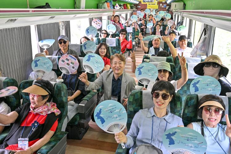 ±¤º¹ 80ÁÖ³âÀ» ¸Â¾Æ ¸¶·ÃµÈ À̹ø ÆòÈ¿Â÷´Â 5‧18¹ÎÁÖȿ°ú 8‧15±¤º¹ÀÇ ¿ª»ç¿Í Á¤½ÅÀ» Àմ Ưº°±âÂ÷´Ù. Ãâ¹ß Àü ȿõ¿ª ±¤Àå¿¡¼´Â ¡®±¤º¹80ÁÖ³â, Æòȸ¦ ½Æ°í ÅëÀϷΡ¯¸¦ ÁÖÁ¦·Î ´ëÇü Çѹݵµ±â¿¡ ÆòÈ¿Í ÅëÀÏÀÇ ¿°¿øÀ» ´ãÀº Á¾À̺ñÇà±â¸¦ ³¯¸®´Â Ã⹫½ÄÀÌ ¿·È´Ù.
