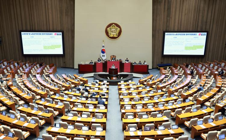 24ÀÏ ±¹È¸¿Í °í¿ë³ëµ¿ºÎ¿¡ µû¸£¸é À̳¯ ±¹È¸´Â º»È¸ÀÇ¿¡¼ ÀçÀû 186¸í, Âù¼º 183¸í, ¹Ý´ë 3¸íÀ¸·Î ³ëÁ¶¹ý °³Á¤¾ÈÀ» ÀǰáÇß´Ù. ±¹¹ÎÀÇÈûÀº ÅõÇ¥¿¡ ºÒÂüÇß´Ù.