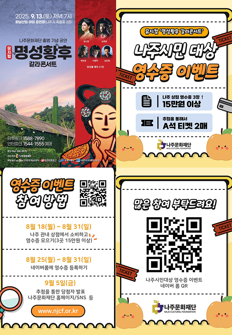 ³ªÁֽùÎÀÌ °ü³» »óÁ¡ 3°÷ À̻󿡼 15¸¸ ¿ø ÀÌ»óÀ» ¼ÒºñÇÑ ¿µ¼öÁõÀ» Á¦ÃâÇϸé Ãß÷À» ÅëÇØ °ø¿¬ A¼® ƼÄÏ 2¸Å¸¦ ¹ÞÀ» ¼ö ÀÖ´Ù.