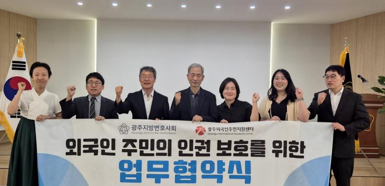 ±¤Áֽô ¿Ü±¹ÀÎÁÖ¹ÎÁö¿ø¼¾ÅÍ¿Í ±¤ÁÖÁö¹æº¯È£»çȸ ÀÌÁֹιý·üÁö¿ø´ÜÀÌ ¾÷¹«Çù¾àÀ» ü°áÇß´Ù°í 27ÀÏ ¹àÇû´Ù.