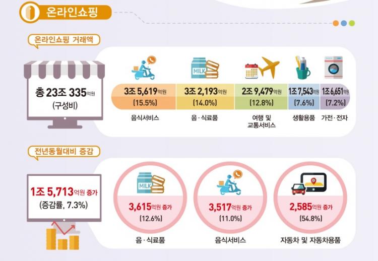 1ÀÏ Åë°èûÀÌ ¹ßÇ¥ÇÑ ¡®7¿ù ¿Â¶óÀμîÇε¿Ç⡯¿¡ µû¸£¸é Áö³ 7¿ù ¿Â¶óÀμîÇÎ °Å·¡¾×Àº 23Á¶335¾ï¿øÀ¸·Î Àü³â µ¿¿ù ´ëºñ 7.3% Áõ°¡Çß´Ù. Áö³ÇØ 6¿ù(9.2%) ÀÌÈÄ °¡Àå Å« Áõ°¡ÆøÀÌ´Ù.