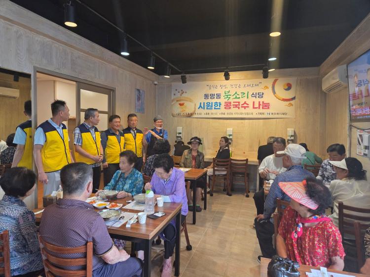 À̹ø Çà»ç´Â ¹«´õÀ§·Î ÁöÄ£ ÁֹεéÀÇ °Ç°ÇÑ ¿©¸§³ª±â¸¦ ¹Ù¶ó´Â ¸¶À½À¸·Î ¸¶·ÃµÆÀ¸¸ç, ºÏ¼Ò¸® ½Ä´çÀº µ¿¸íµ¿Áö¿ª»çȸº¸ÀåÇùÀÇü(À§¿øÀå ¿ÀÀç¼®)¿¡ 1¸¸ 2000 ¿ø »ó´çÀÇ ½Ä»çÄíÆù 150ÀåÀ» Àü´ÞÇØ ´ë»óÀÚµéÀÌ ÀÚÀ¯·Ó°Ô ¹æ¹®ÇØ ½Ä»çÇÒ ¼ö ÀÖµµ·Ï Çß´Ù.