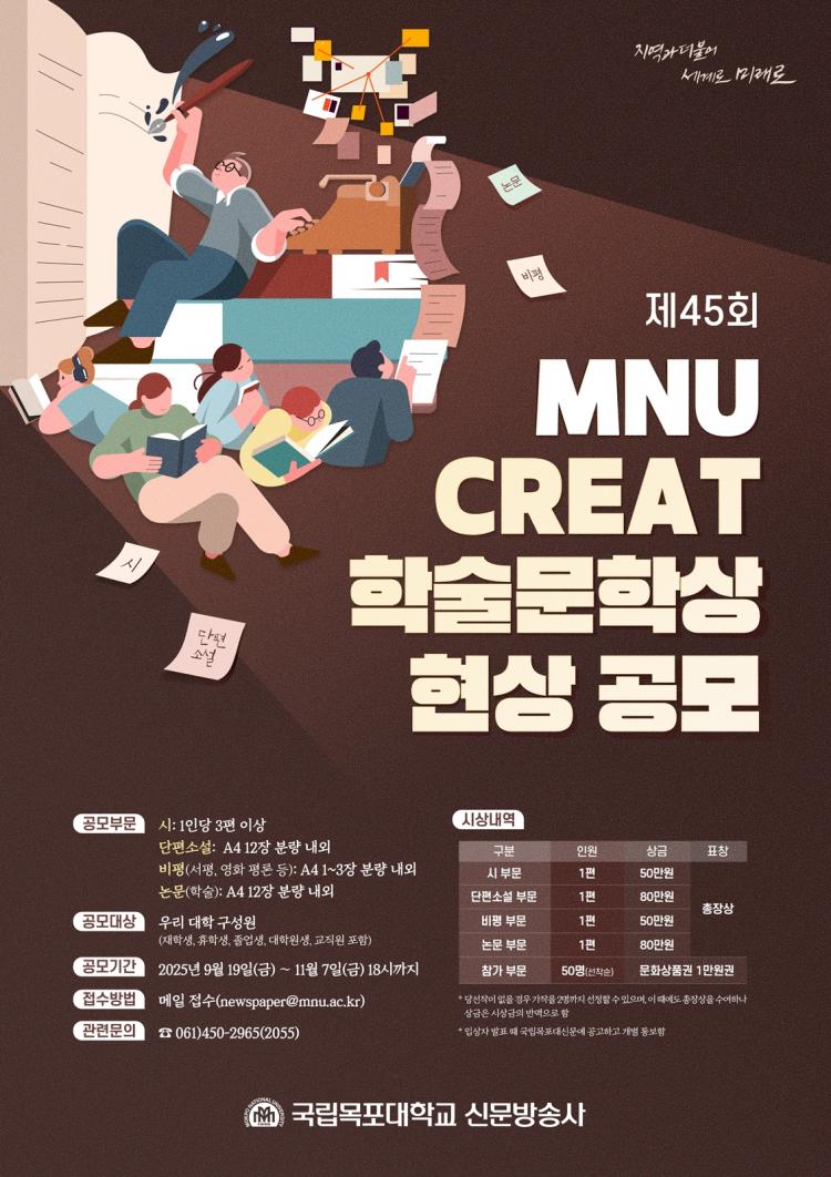 °ø¸ð´Â ½Ã 3Æí ÀÌ»ó, ´ÜÆí¼Ò¼³Àº A4 12Àå ºÐ·®, ºñÆò(¼Æò, ¿µÈ Æò·Ð µî)Àº A4 1~3Àå ºÐ·®, ³í¹®(Çмú)Àº A4 12Àå ºÐ·® ³»¿Ü·Î ÀÛ¼ºÇØ ¸ÞÀÏ(newspaper@mnu.ac.kr)·Î Á¢¼öÇϸç ÀÚ¼¼ÇÑ »çÇ×Àº ±¹¸³¸ñÆ÷´ë ´©¸®Áý ÀϹݰøÁö¸¦ È®ÀÎÇÏ¸é µÈ´Ù.