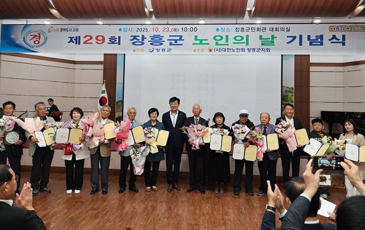 À̳¯ ±â³ä½Ä¿¡¼´Â ³ëÀκ¹Áö ÁõÁøÀ» À§ÇØ È°¹ßÇÏ°Ô È°µ¿ÇÏ´Â 10¸í¿¡°Ô ±º¼ö ǥâ, ¸ð¹ü³ëÀÎ µî 10¸í¿¡ ´ëÇØ¼´Â ³ëÀÎȸ ÁöȸÀå»óÀ» ¼ö¿©ÇÏ°í ±¹°¡¿Í »çȸ ¹ßÀü¿¡ Çå½ÅÇÑ µ¥¿¡ °¨»ç¿Í °Ý·ÁÀÇ ¶æÀ» ÀüÇß´Ù.