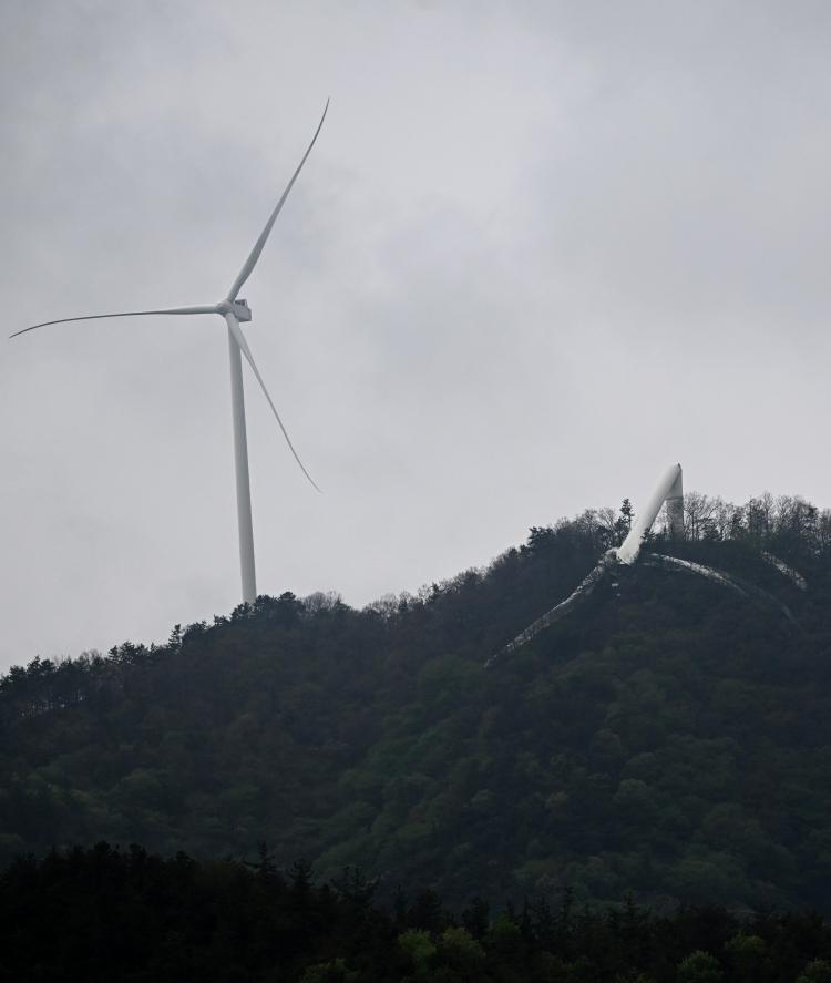 ¾Õ¼ ³ 4¿ù21ÀÏ ¿ÀÀü 2½Ã50ºÐ²² ȼø±º µµ¾Ï¸é ¡®±Ý¼º»ê dz·Â¹ßÀü ´ÜÁö¡¯¿¡¼ dz·Â¹ßÀü±â 1±â°¡ ³Ñ¾îÁ³´Ù. ³Ñ¾îÁø dz·Â¹ßÀü±â´Â ÁöÁö´ë ÇϴܺηκÎÅÍ ¾à 30m ³ôÀÌ À§Ä¡°¡ »¡´ëó·³ ²ª¿´´Ù. Àθí ÇÇÇØ´Â ¾ø¾úÁö¸¸ dz·Â¹ßÀü±âÀÇ ¾ÈÀü¼ºÀ» µÑ·¯½Î°í Àα٠ÁֹΠºÒ¾ÈÀÌ Ä¿Á³´Ù.