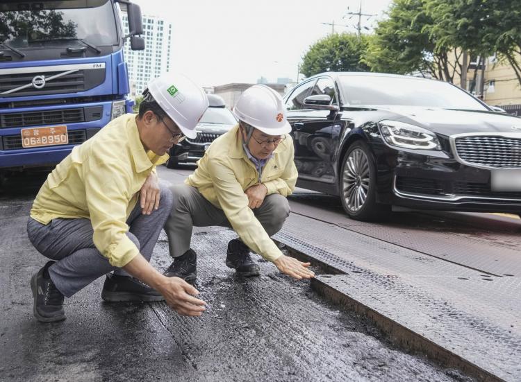 ÇöÀç 1°ø±¸(Â÷·®±âÁö~¿îõÀú¼öÁö) µµ·Î °³¹æ·üÀº 93%·Î °¡Àå ºü¸£°Ô º¹±¸°¡ ÁøÇàµÇ°í ÀÖÀ¸¸ç 2°ø±¸(¿ùµåÄŰæ±âÀå) 34%, 3°ø±¸(¹«µî½ÃÀå ÀαÙ) 60%, 4°ø±¸(³²±¤ÁÖ °í°¡µµ·Î ¾Õ) 52%, 5°ø±¸(»ê¼ö¿À°Å¸® ÀαÙ) 66%, 6°ø±¸(±¤ÁÖ¿ª µÞÆí) 75%ÀÌ´Ù.
