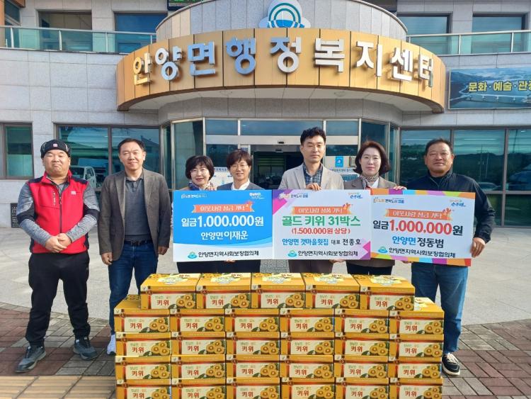 À̳¯ ¾È¾ç¸é °¹¸¶À»È½Áý(´ëÇ¥ ÀüÁ¾È£)¿¡¼´Â 150¸¸¿ø »ó´çÀÇ ¹°Ç°(°ñµåŰÀ§ 31¹Ú½º)À», ¾È¾ç¸é Á¤µ¿¹ü ¾¾¿Í ÀÌÀç¿î ¾¾´Â °¢°¢ 100¸¸¿øÀÇ ¼º±ÝÀ» Àü´ÞÇß´Ù.